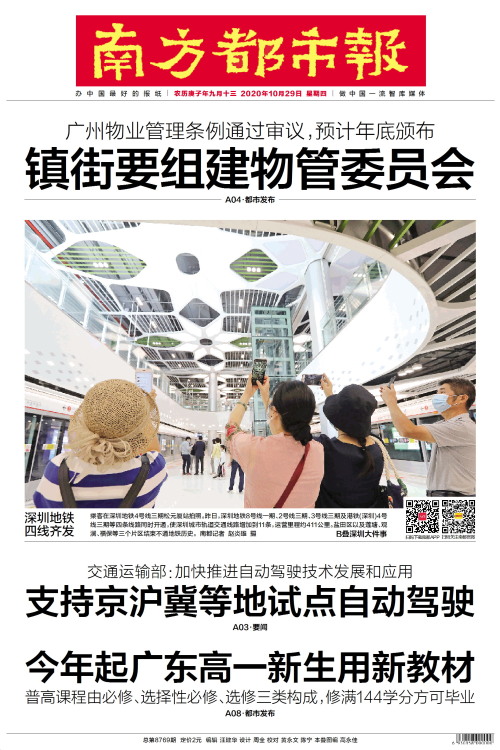 乘客在深圳地铁4号线三期松元厦站拍照。昨日,深圳地铁8号线一期、2号线三期、3号线三期及港铁(深圳)4号线三期等四条线路同时开通,使深圳城市轨道交通线路增加到11条,运营里程约411公里。盐田区以及莲