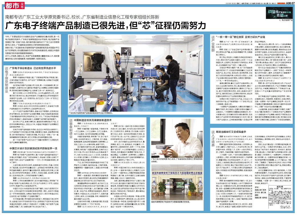 战略性产业集群发展高端访谈之电子信息产业今年,广东谋划选定10大战略性支柱产业集群进行重点培育,新一代电子信息位列其中。广东电子信息制造技术水平如何,电子信息产业发展到了哪一阶段?对此,南方都市报记者
