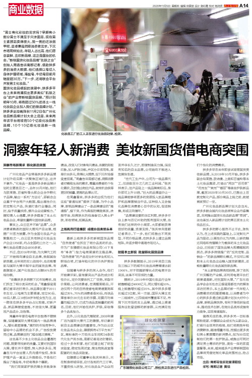 “本土新锐品牌表现抢眼,除了依托广州完整的产业链,还利用电商平台打破渠道垄断,对抗国际大牌。”广东化妆品学会会长杜志云接受南都在内的媒体采访时表示,本土品牌对新一代年轻人消费需求的把握更精准。以消费者为中心的拼多多通过新品牌计划加大对中小品牌、新锐品牌扶持,有利于降低研发成本,推动技术创新,在细分品类形成强有力竞争,实现弯道超车。