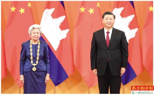 国家主席习近平为柬埔寨太后举行授勋仪式
