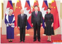 习近平夫妇会见柬埔寨国王西哈莫尼和太后莫尼列