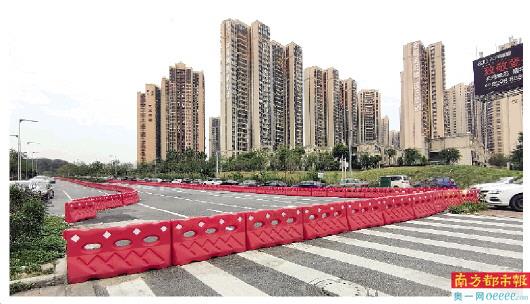 11月4日下午5时,南都记者重新走访龙湖天宸原著小区东门路段。从黄云路进入该路段,掉头转弯区域用隔离墩围成一个闭合空间,防止车辆进入停放。东门路段为双向车道,中间由绿化带隔挡,车道一侧划有临停车位,另一侧距绿化带约一米处沿路设置隔离墩,停满车辆后路面仅剩一车可行的空间。车辆行驶较为有序,南都记者观察10分钟期内未造成拥堵。小区东门正对路口,几辆机动车停放在转弯处。附近住户介绍,增设隔离墩后车辆乱停放现象减少,通行秩序好转,但仍有车辆停放在临停车位外。