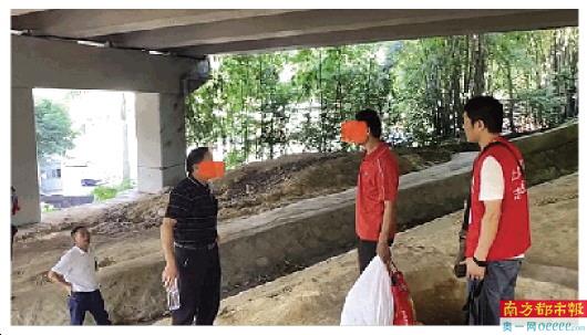 当晚,刘富旺带着几名志愿者和村治安联防队员,打着手电筒来到高架桥底,“位置不好找,要爬上一个小土坡”。