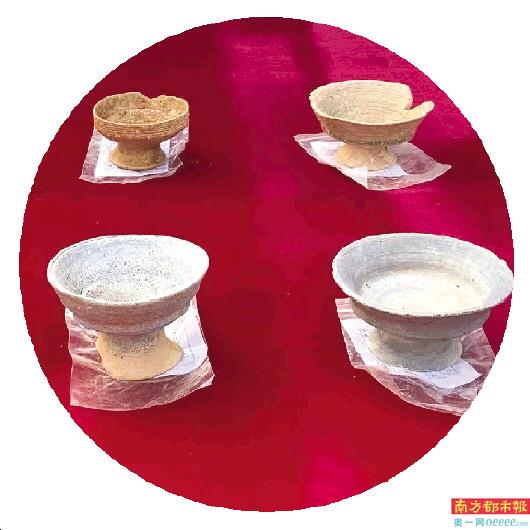 在现场,广州市文物考古研究院馆员韩炜师正在墓穴中整理青铜器陪葬品。据广州市文物考古研究院馆员、考古现场负责人王慧介绍,此次发掘中发现约1/3的墓葬未见随葬品,且其中不乏规模相对较大的墓葬;有随葬品的数量也不多,少则一件,多则五六件,有印纹硬陶、原始瓷、铜、玉石器等。原始瓷豆是最常见的随葬品,有不少是用残器随葬,当属“碎物葬”习俗的反映。