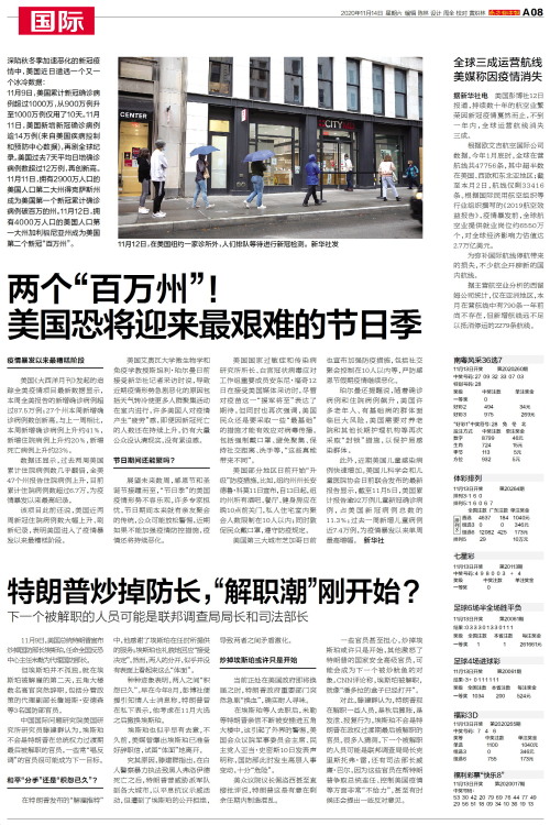 深陷秋冬季加速恶化的新冠疫情中,美国近日遭遇一个又一个冰冷数据:11月9日,美国累计新冠确诊病例超过1000万,从900万例升至1000万例仅用了10天。11月11日,美国新增新冠确诊病例逾14万例(