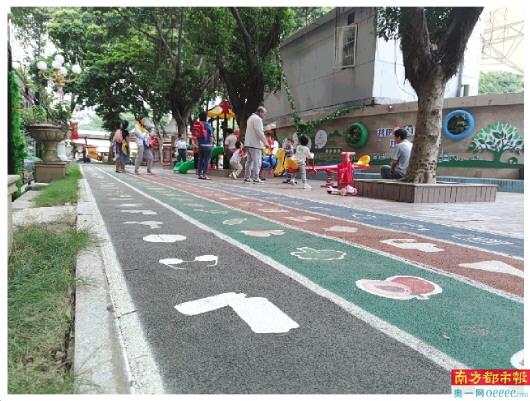 海珠区沙园街道科普乐园中的垃圾分类主题趣味跑道。 实习生 朱冽 摄