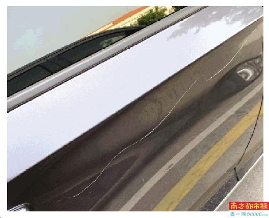 陈先生告诉记者,11月5日上午,他发现自己停在停车场的小车后车门出现了一条长约40cm的划痕。记者从照片中看到,这条较深的划痕从车把手一直延伸到车门边缘,在车身上尤为明显。陈先生说,就在警方向他开具报警回执时,又有一名南亭村车主报警称其车辆被划。陈先生曾试图去查找停车场监控,但监控数量太少、覆盖面不全,看不到具体是谁划伤了自己的车。无奈之下,他只好花了上千元修补划痕。