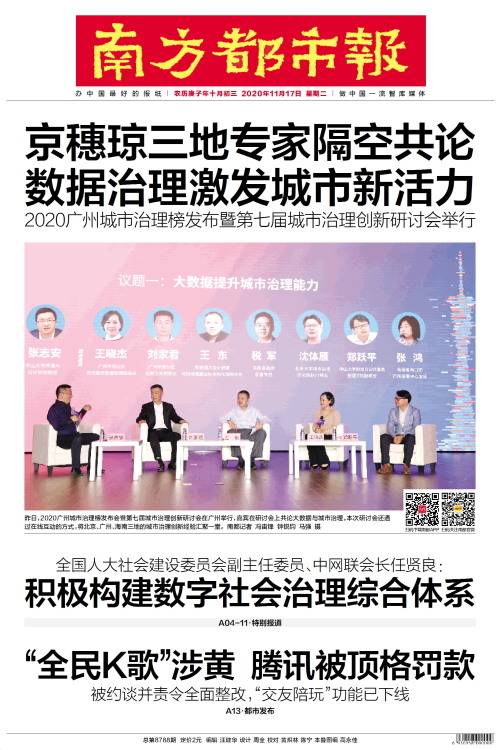 昨日,2020广州城市治理榜发布会暨第七届城市治理创新研讨会在广州举行,嘉宾在研讨会上共论大数据与城市治理。本次研讨会还通过在线互动的方式,将北京、广州、海南三地的城市治理创新经验汇聚一堂。 南都记者