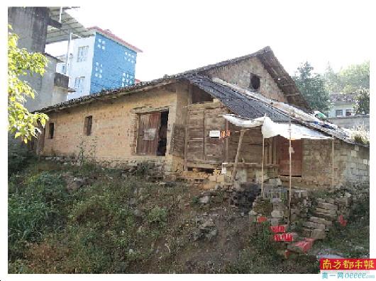 张玲丽家破败的老屋与邻居的房子形成鲜明对比。