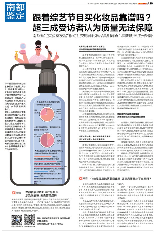 跟着综艺节目买化妆品靠谱吗?超三成受访者认为质量无法保障