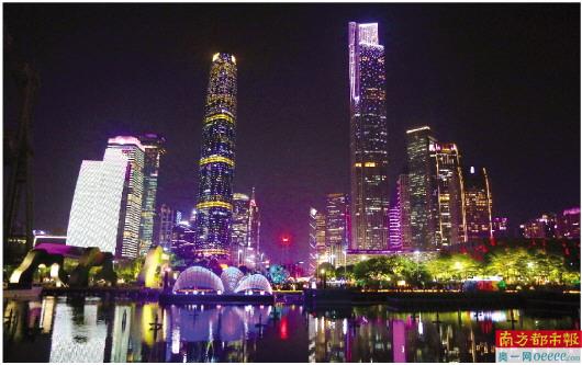 2019年11月18日,第九届广州国际灯光节正式开幕。这是花城广场和海心沙的灯光作品。