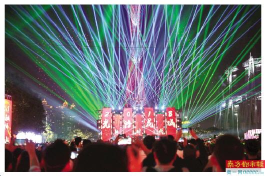 11月18日19时40分,一束激光从近600米的广州塔顶射向花城广场南广场的C位作品《时空·共生》,广州国际灯光节连续第十年如约与广州市民相见,伴随着珠江跃动的水流波纹,主题游船驶入灯光璀璨的城市夜景中。