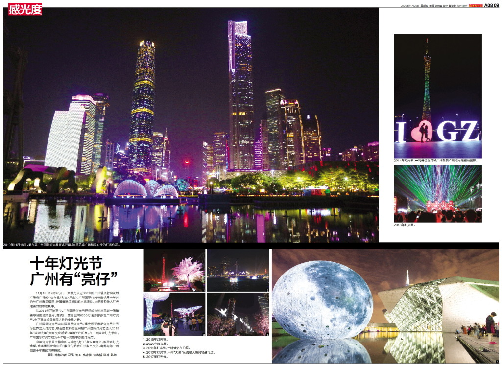 11月18日19时40分,一束激光从近600米的广州塔顶射向花城广场南广场的C位作品《时空·共生》,广州国际灯光节连续第十年如约与广州市民相见,伴随着珠江跃动的水流波纹,主题游船驶入灯光璀璨的城市夜景