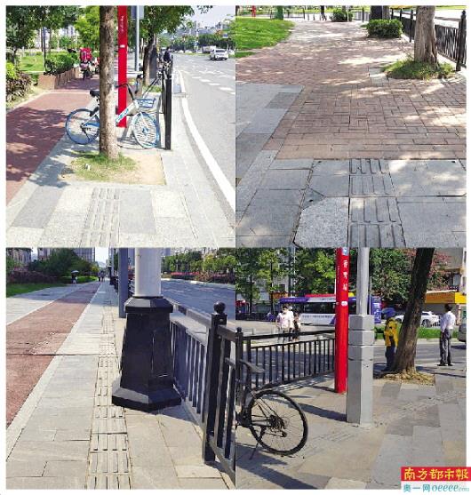 大沙街道办事处在9月29日回复,该街道办负责的大沙东地铁站“闪电盲道”已整改完毕。地铁口周边也已将各类侵占盲道的设施清退。南岗地铁站属地管理部门南岗街道办事处则回应称,“把盲道划入车位是工作失误,将尽快取消盲道上的车位,禁止车辆侵占盲道。”10月9日,南都记者回访发现,盲道上的非机动车停车位白线已擦除,但仍然有大量非机动车停放在盲道上。