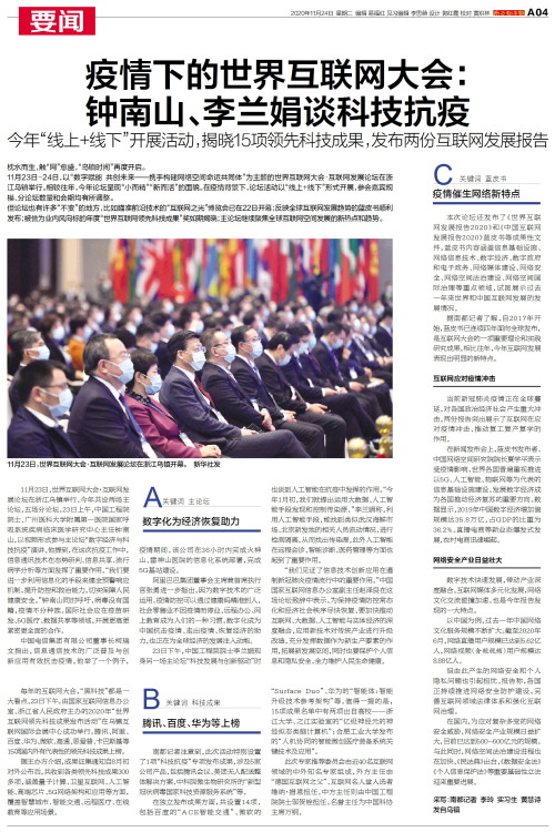 疫情下的世界互联网大会:钟南山、李兰娟谈科技抗疫