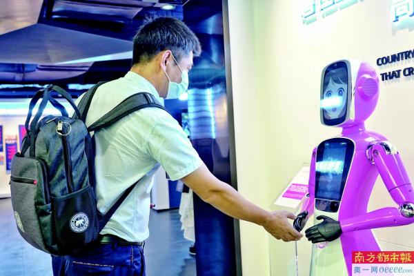 “跟着湾姐去调研”,团友们在碧桂园总部与机器人互动。