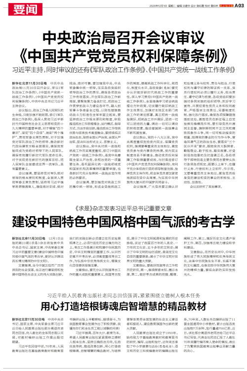新华社北京11月30日电 12月1日出版的第23期《求是》杂志将发表中共中央总书记、国家主席、中央军委主席习近平的重要文章《建设中国特色中国风格中国气派的考古学,更好认识源远流长博大精深的中华文明》。