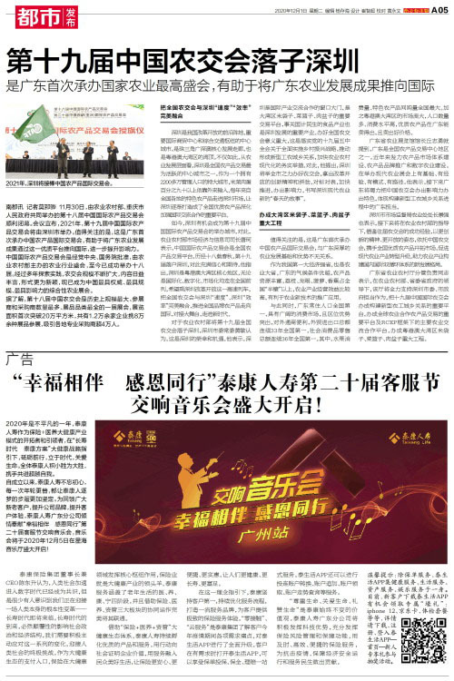 南都讯 记者莫郅骅 11月30日,由农业农村部、重庆市人民政府共同举办的第十八届中国国际农产品交易会顺利闭幕。会议宣布,2021年,第十九届中国国际农产品交易会将由深圳市举办。值得关注的是,这是广东首