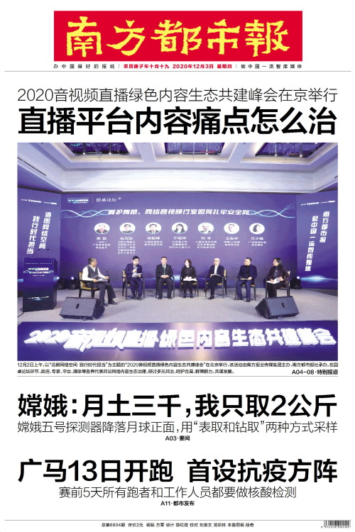 12月2日上午,以“清朗网络空间 践行时代担当”为主题的“2020音视频直播绿色内容生态共建峰会”在北京举行,该活动由南方报业传媒集团主办,南方都市报社承办。在圆桌论坛环节,政府、专家、平台、媒体等各