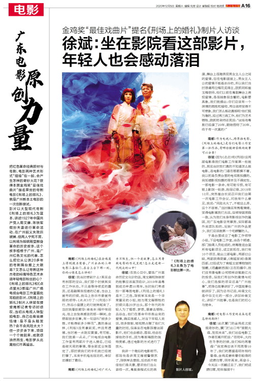 把红色革命经典题材与粤剧、电影两种艺术形式“碰撞”在一起,会产生怎样的奇妙火花?获得本届金鸡奖“最佳戏曲片”提名荣誉的粤剧电影《刑场上的婚礼》,就是广州新本土电影的一次创新尝试。影片以大型现代粤剧《刑