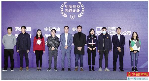 获得年度抗疫先锋企业的代表上台领奖。