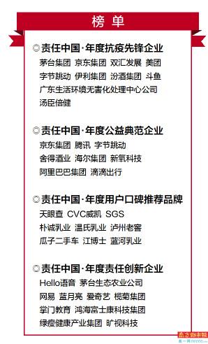 12月16日,南方都市报主办的“多维履责 高格向上——2020责任中国·CSR年度盛典”在广州举行,并现场揭晓年度抗疫先锋企业、年度公益典范企业、年度用户口碑推荐品牌、年度责任创新企业等名单。