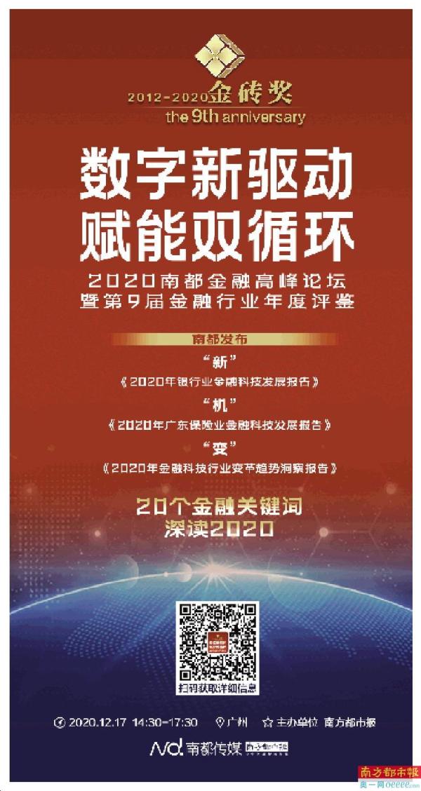 三份深度调研报告、三场主题演讲、一场圆桌论坛,2020年南都金融高峰论坛暨第9届金融业年度评鉴盛典于今日(12月17日)重磅开启。