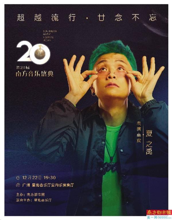 第20届南方音乐盛典除了现场公布专业推荐名单,代表艺人登台授勋,业内高层到场助阵,还会有成军二十年的资深乐队与非门《从南开始》新歌首唱,玩具船长乐队主唱李奕瀚与马帮乐队主唱叶宏钢的联袂特别演出,“方言民谣”领军人物冯翔和新锐音乐人杨沐泽的吉他弹唱,以及宝藏Rapper夏之禹的犀利说唱。