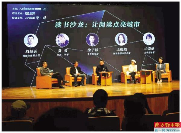 活动当天举办了一场题为“让阅读点亮城市”的主题沙龙,学者费勇、大数据专家涂子沛、当当品牌合作总监王嫣然、文学评论家申霞艳和南都文体部主任刘炜茗一起,展开了深入探讨和交流。