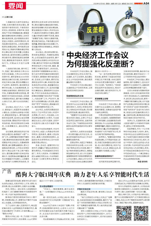 观察中央经济工作会议指出,强化反垄断和防止资本无序扩张。反垄断、反不正当竞争,是完善社会主义市场经济体制、推动高质量发展的内在要求。中央经济工作会议提出强化反垄断是出于怎样的考虑,又预期实现怎样的