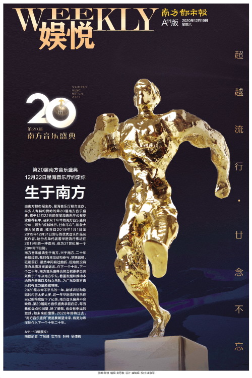 由南方都市报主办、星海音乐厅联合主办、平安人寿特约赞助的第20届南方音乐盛典,将于12月22日晚在星海音乐厅公布专业推荐名单。迎来双十年华的南方音乐盛典今年主题为“超越流行,廿念不忘”,形象大使为吴青