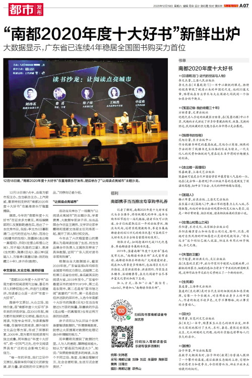12月18日晚7点半,由南方都市报主办,当当联合主办,上汽荣威、喜茶特别支持的“南都2020年度十大好书”在星海音乐厅隆重揭晓。据悉,今年的“南都年度十大好书”在征求多方意见,再经编辑部同仁反复斟酌遴