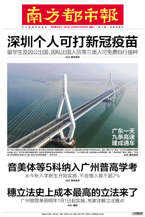 位于汕头市潮阳区的潮汕环线金潮大桥。昨日潮汕环线高速公路建成通车,全长82.23公里的潮汕环线呈半环形穿过汕头、潮州、揭阳三市,将进一步引领汕潮揭都市圈融合发展。当日广东共有9条高速建成通车,包括河惠