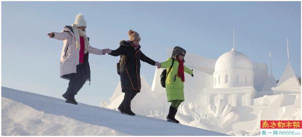 雪趣 1月2日,游客在哈尔滨太阳岛“雪博会”园区游玩。