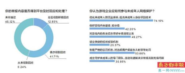 在游戏平台遭遇涉黄涉暴涉赌等不良信息应怎么办?超半数受访者表示会直接举报,然而,举报似乎并无显著效果,调查发现,受访未成年人家长多指责游戏平台对投诉的回应不积极、处理滞后,55%的受访家长表示曾对游戏内的不良信息进行举报,但仅有约12.9%曾得到游戏平台对举报内容的及时回应和处理,还有家长甚至从未得到任何回应。
