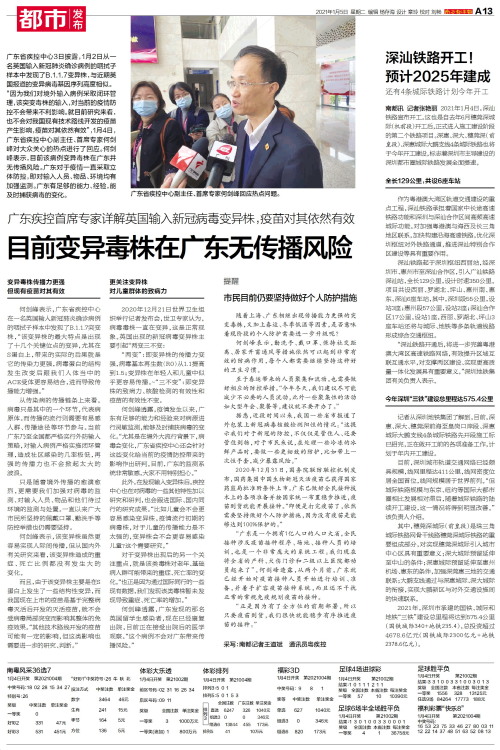 广东省疾控中心3日披露,1月2日从一名英国输入新冠肺炎确诊病例的咽拭子样本中发现了B.1.1.7变异株,与近期英国报道的变异病毒基因序列高度相似。“因为我们对境外输入病例采取闭环管理,该突变毒株的输入