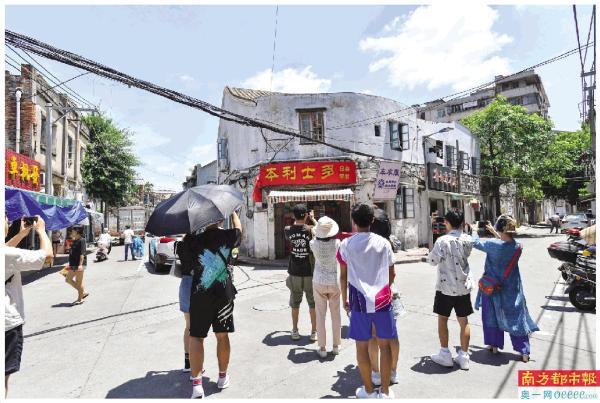赤坎老街刚刚走红时,当地的街道办和文旅局也迅速做出了反应:不仅在拍摄点挂上了标识牌,还组织了由党员、老街坊和市民组成的党群志愿服务队,在老街设立志愿者服务岗,为游客提供导游、咨询等志愿服务。赤坎区文旅体局也做了相应的配套提升——位于老街三叉路口的本利士多、永宁路公房朱朝阳的家等拍摄点,都挂上了文图指示牌,方便游客辨识和寻找。在人气很旺的水井头油条拍摄点,中山街道党员志愿者服务岗设于此,游客在这里可以看到《赤坎老街手绘地图》《赤坎美食手绘地图》,头戴小红帽、身穿红马甲的志愿者微笑着给一批批前来的游客提供帮助。