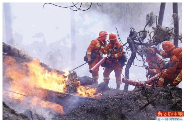 2020年3月31日,救援人员在四川凉山州森林火灾现场灭火。 新华社资料图片