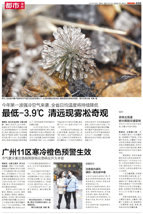 广州11区寒冷橙色预警生效