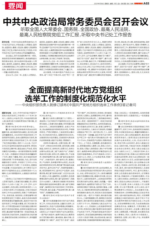 据新华社电 近日,中共中央印发《中国共产党地方组织选举工作条例》(以下简称《条例》)。《条例》公开发布之际,中央组织部负责人就《条例》修订实施和贯彻执行等问题,回答了记者提问。问:请介绍《条例》修订的