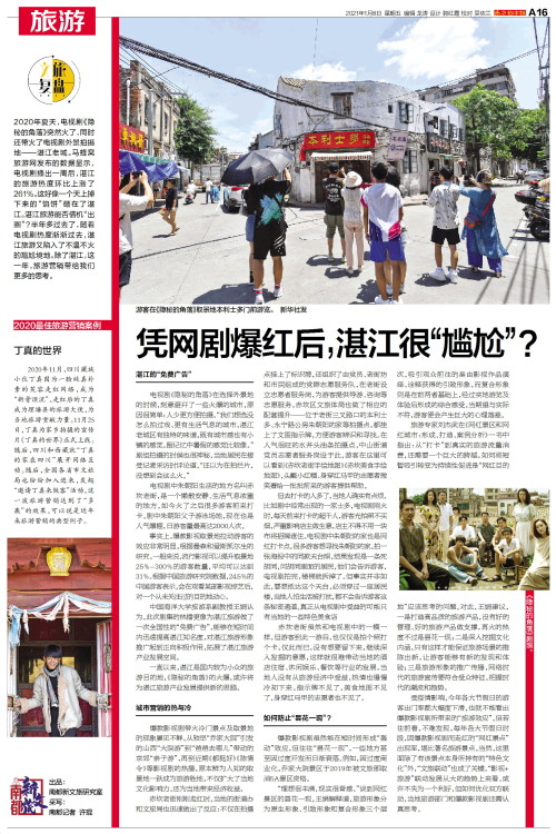 2020年夏天,电视剧《隐秘的角落》突然火了,同时还带火了电视剧外景拍摄地——湛江老城。马蜂窝旅游网发布的数据显示,电视剧播出一周后,湛江的旅游热度环比上涨了261%。这好像一个天上掉下来的“馅饼”砸