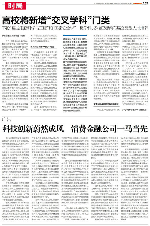 高校学科门类迎重大调整。国务院学位委员会、教育部近日发文通知,经国务院学位委员会批准,决定设置“交叉学科”门类、“集成电路科学与工程”和“国家安全学”一级学科。至此,我国高校形成14个学科门类。国务院
