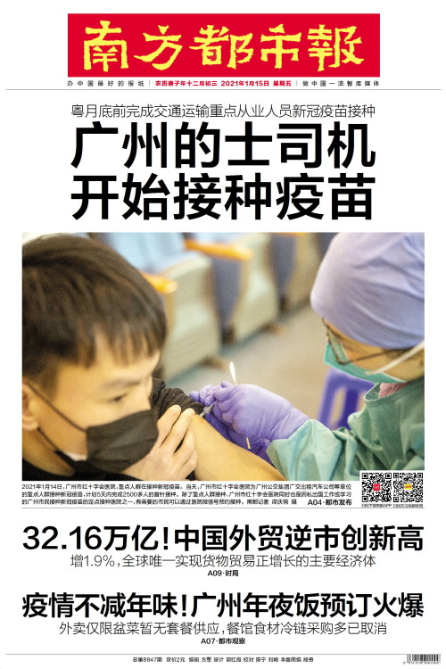 2021年1月14日,广州市红十字会医院,重点人群在接种新冠疫苗。当天,广州市红十字会医院为广州公交集团广交出租汽车公司等单位的重点人群接种新冠疫苗,计划5天内完成2500多人的首针接种。除了重点人群
