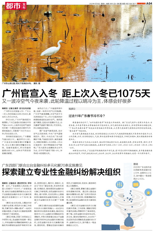 南都讯 记者王美苏 实习生毛诗宜 广州昨日正式官宣入冬!广州上一次入冬时间是2018年1月29日,距本次入冬已1075天。昨日10时,广州市气象局官方微博称,广州已连续5天的滑动平均气温≤10.0℃,