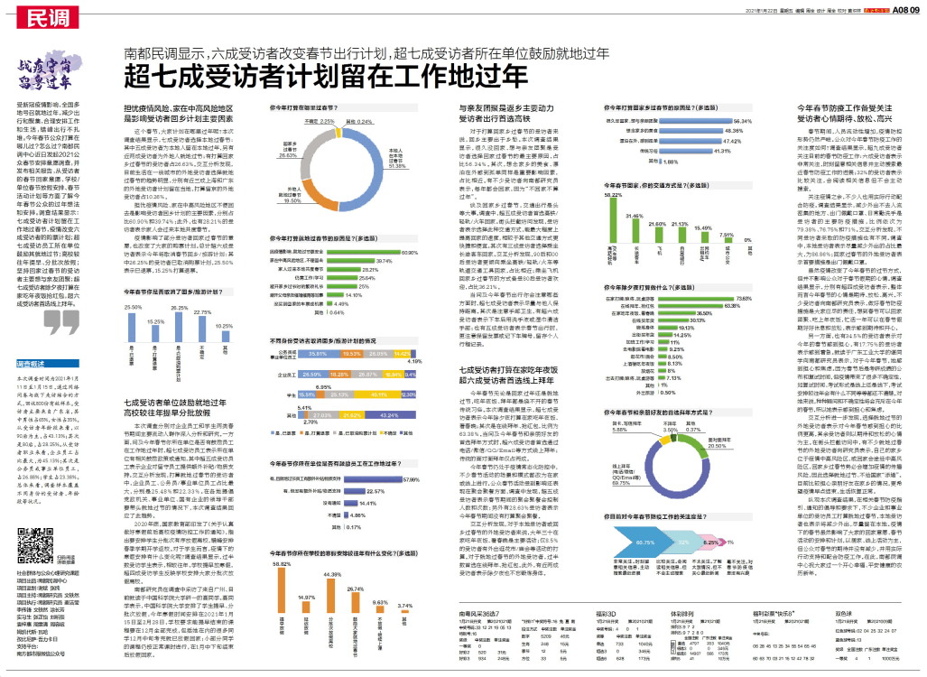 受新冠疫情影响,全国多地号召就地过年,减少出行和聚集,合理安排工作和生活,错峰出行不扎堆。今年春节公众打算在哪儿过?怎么过?南都民调中心近日发起2021公众春节安排意愿调查,并发布相关报告,从受访者的
