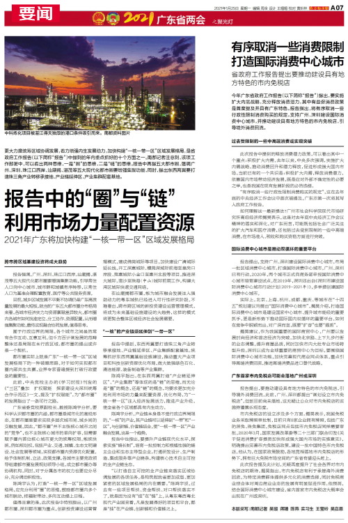 今年广东省政府工作报告(以下简称“报告”)提出,要实施扩大内需战略,充分释放消费潜力,其中有些促消费政策是首度提及并具有广东特色。报告指出,将有序取消一些行政性限制消费购买的规定。支持广州、深圳建设国