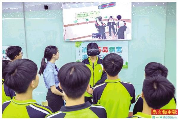 广西灵山县青少年法治教育实践基地,当地学生通过VR设备了解校园欺凌的预防和应对措施。 新华社发