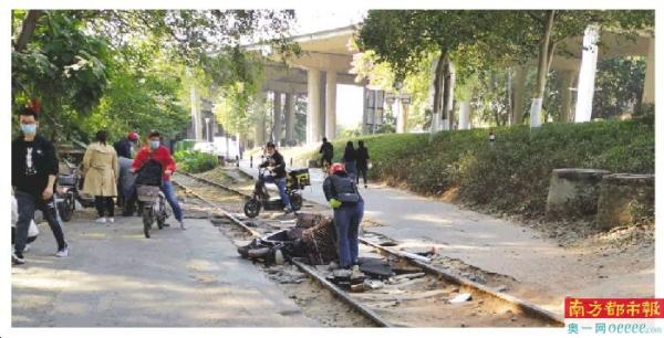 市民王先生向南都“记者帮”反映,天河区华景公安宿舍旁有一条废弃的火车轨道,轨道两边联通师大暨大和华景新城,周边是华南快速干线与中山立交桥,因此行人、非机动车多会选择从铁道通行。2020年12月初,铁道上的水泥被全部铲除,裸露出铁轨导致行人和电动车通行不方便。王先生还反映,由于铁道通行不便,很多市民选择铤而走险走高架桥机动车道。其他受访市民也表示,希望能提供一条便民小道方便通行。