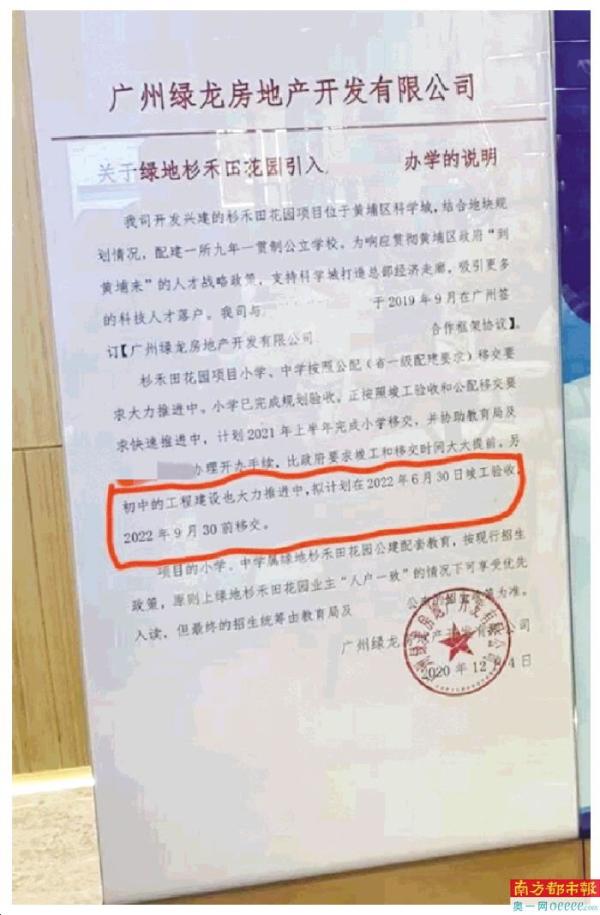 市民郑女士向南都“记者帮”反映,2020年10月她从黄埔区绿地杉禾田花园楼盘销售人员处了解到,小区配套的公立中学即将于2022年9月1日开学。“刚好我儿子可以赶上读初中”,于是她下了5万元定金。后来她又得知具体开学时间待定,为此向楼盘开发商广州绿龙房地产开发有限公司追讨5万元定金遭拒。