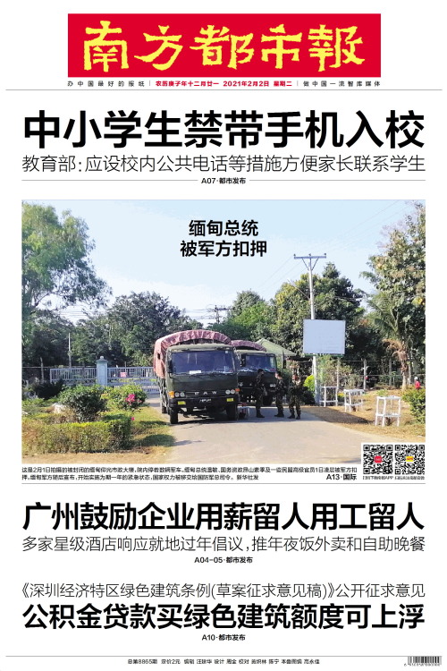 这是2月1日拍摄的被封闭的缅甸仰光市政大楼,院内停着数辆军车。缅甸总统温敏、国务资政昂山素季及一些民盟高级官员1日凌晨被军方扣押。缅甸军方随后宣布,开始实施为期一年的紧急状态,国家权力被移交给国防军总